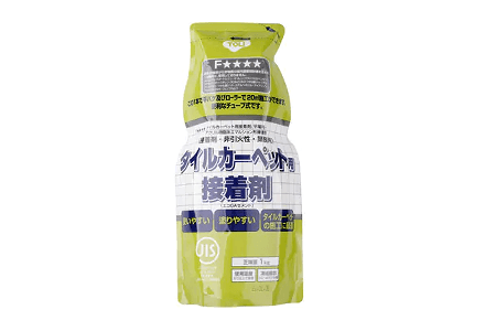 接着剤(東リ)乾燥後も粘着性があるタイルカーペット専門の接着剤です。はがしやすく下地が傷つきにくいピールアップ工法を採用しています。有機溶剤中毒、引火などのリスクが極めて低いホルムアルデヒド放散量区分JIS F☆☆☆☆(Fフォースター)商品です。