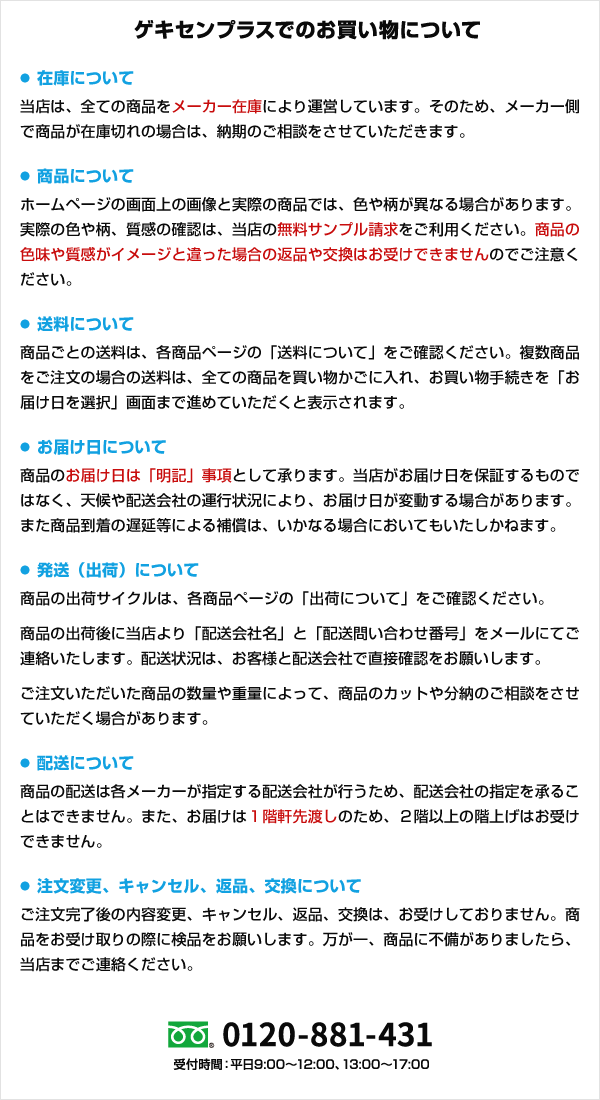 カーペットのカラーは、サンプルを初めに4つ、後で更に5つ送っていただき選びましたが、A4サイズくらいあるのでイメージしやすく、最適なものをチョイスできました。